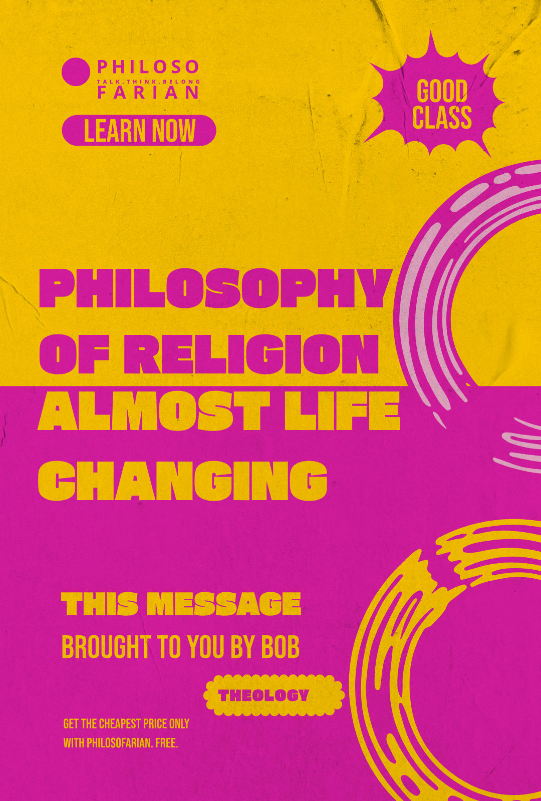 Bob wanted to put an ad out for taking Seth's philosophy of religion courses. They didn't entirely change his life, but the course can be almost life-changing.